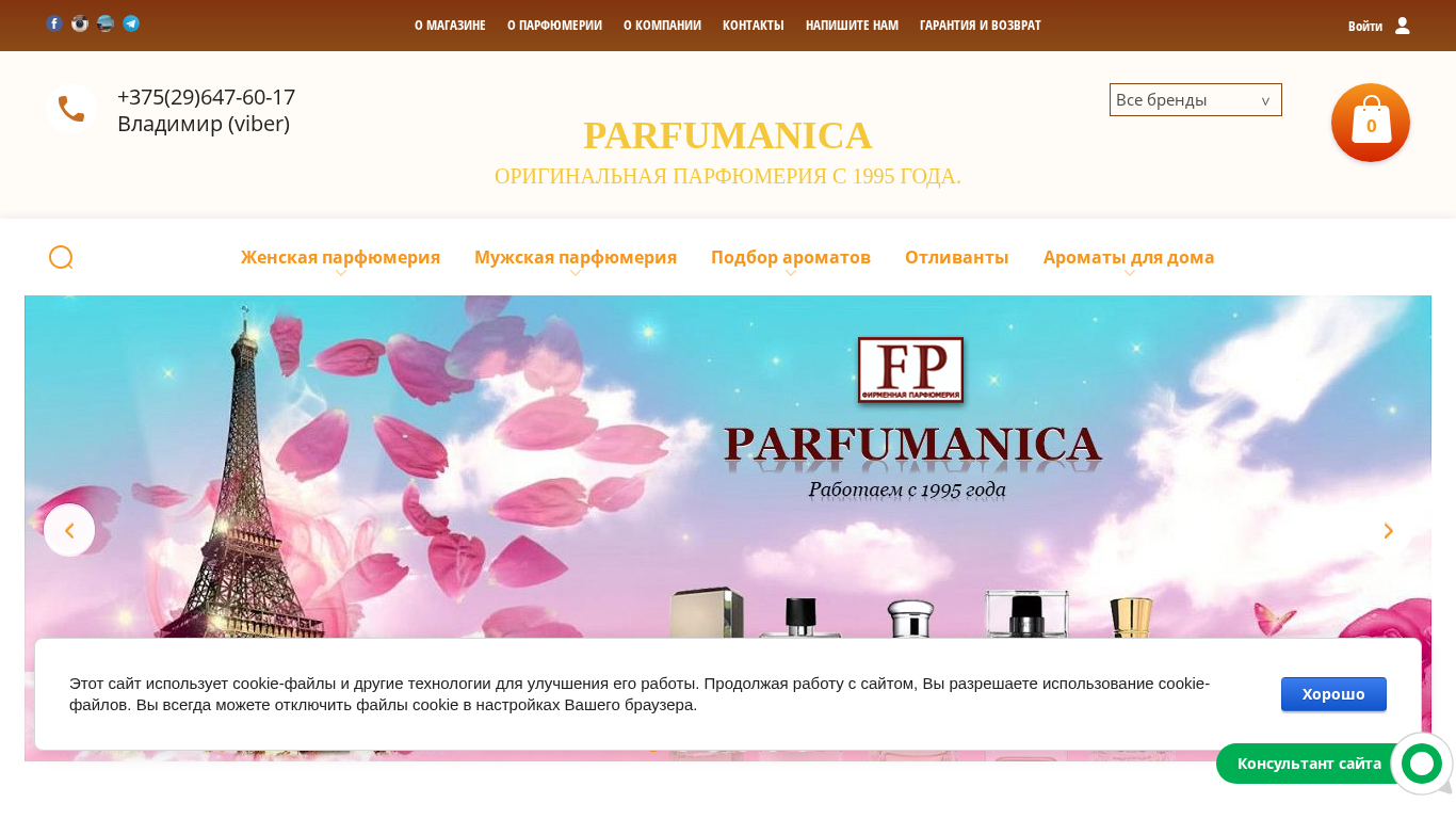 SEO-описание | Интернет-магазин оригинальной парфюмерии в Минске. Купить духи, туалетную воду от ведущих мировых брендов с описанием, фото и отзывами в магазине Parfumanica. Действуют накопительные скидки на весь ассортимент парфюма. |