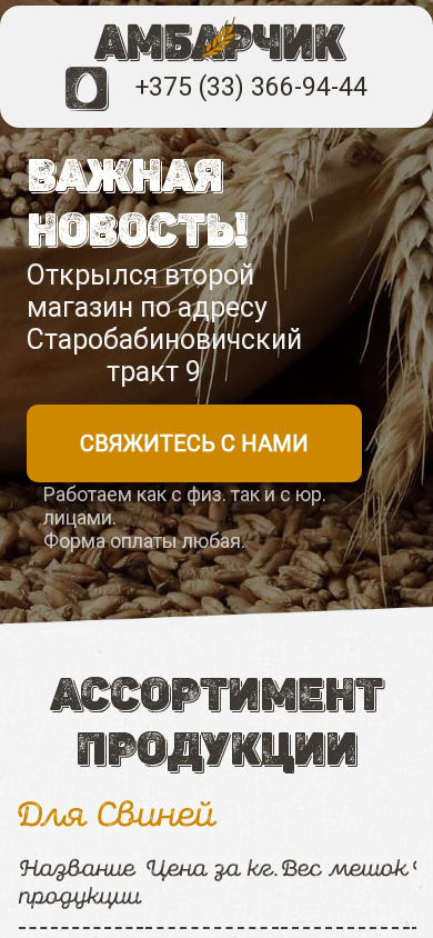 Название / Заголовок | Магазин комбикормов в Витебске |