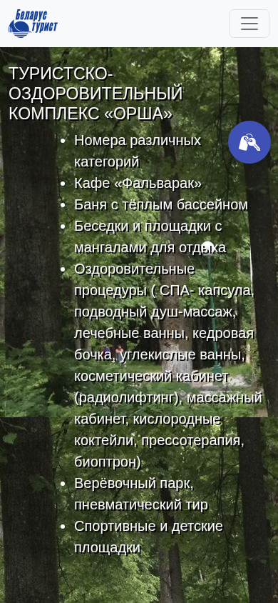 SEO-описание | Турбаза в Орше - идеальное место для отдыха в Беларуси. Расположенный в живописном месте, наш санаторий предлагает широкий спектр услуг |
