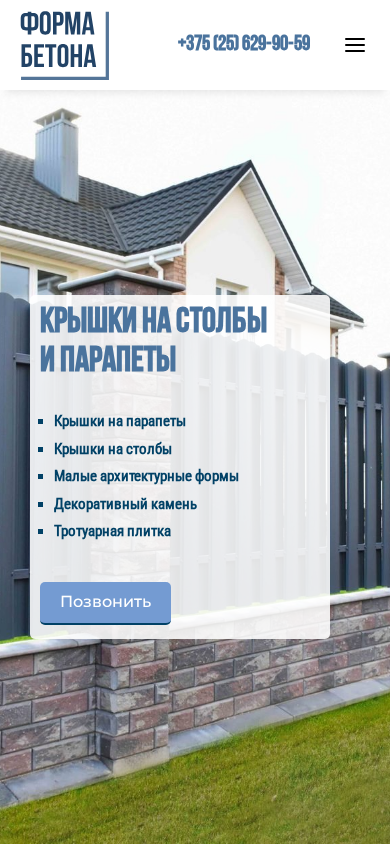 SEO-описание | Крышки на парапеты и столбы ✓ Бетонные крышки для парапетов и столбов в РБ ✓ Форма бетона Брестская область, г. Дрогичин. |