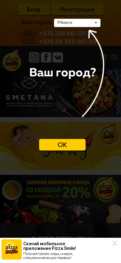 | Название / Заголовок | Можно заказать пиццу на вынос через мобильное приложение Pizzasmile! |