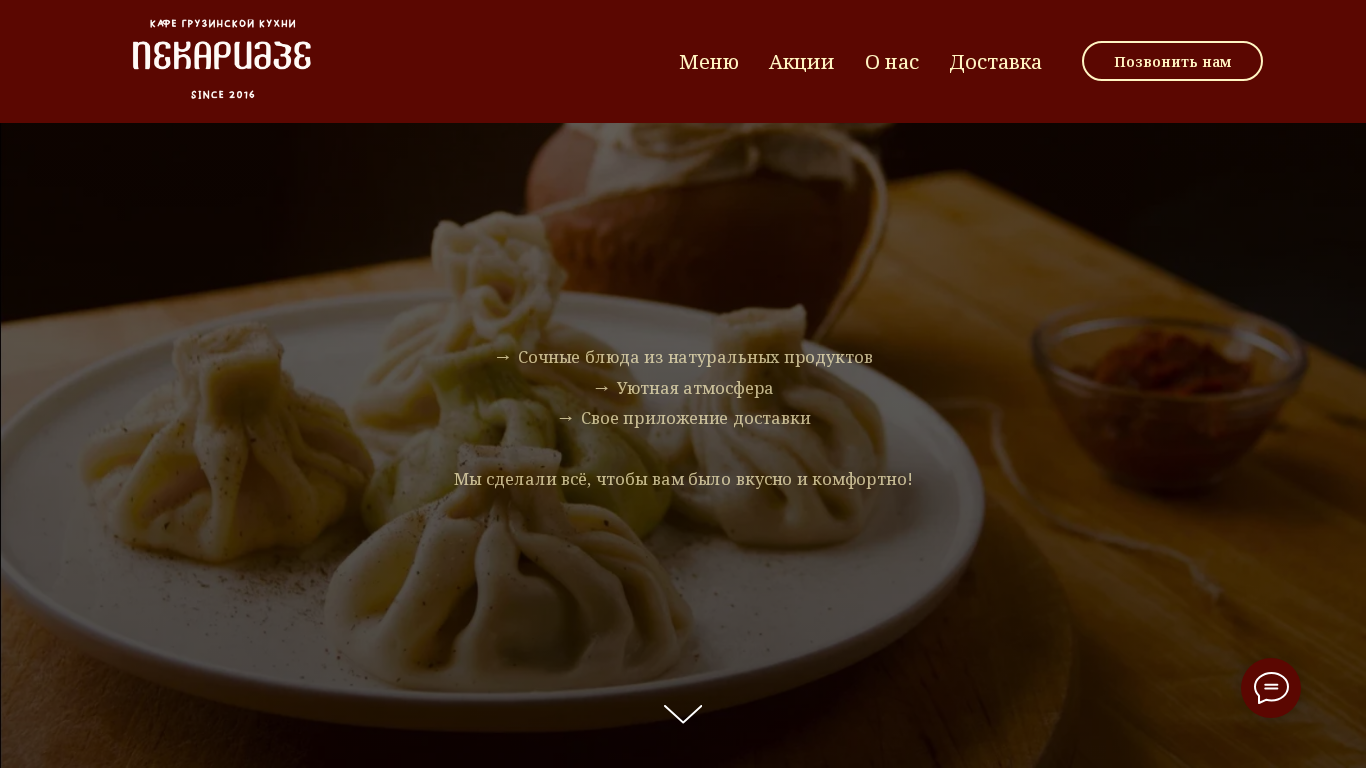 | AI-анализ | --- The portal pekaridze.by is a Georgian café website based in Minsk. It offers a cozy atmosphere and authentic Georgian food. The menu includes a variety of dishes such as hinkali, khachapuri, shashlik, and kubdari. Customers can reserve a table, place an order for delivery, or call the café directly. The website provides information about the café's location and operating hours, as well as details about the menu and the team's commitment to providing a welcoming and hospitable experience. The website also features a mobile application for delivery orders. The café aims to make every customer feel at home and appreciates the traditions of Georgian cuisine. The website's design is simple and user-friendly, with clear calls to action for reserving a table, placing a delivery order, or contacting the café directly. The content is written in Russian |