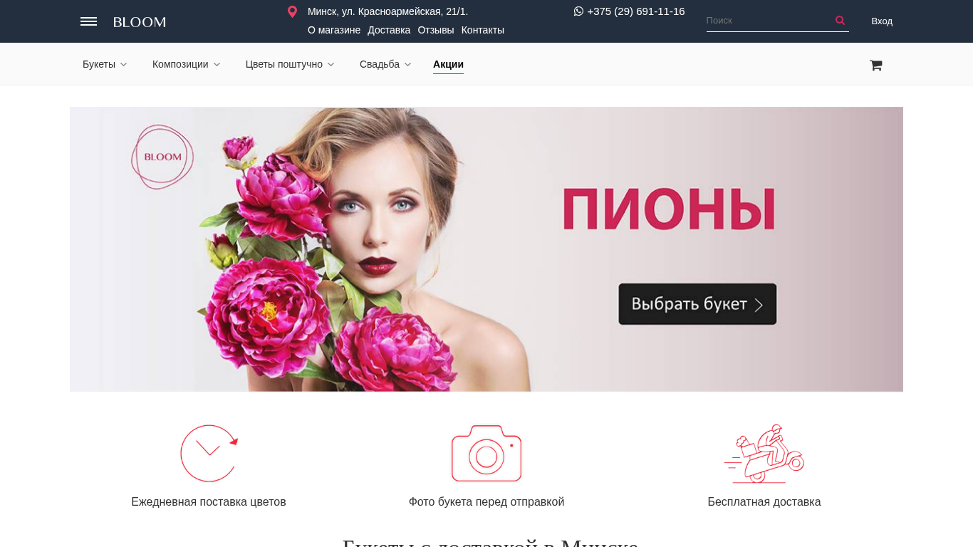 SEO-описание | Купить цветы в Минске ➜ заказ цветов с доставкой на дом в ★ Самом Большом ★ интернет-магазине. ☑ 1200+ букетов на выбор ✈ Доставка цветов по Минску = 0 р ✈ ☑ Гарантия свежести 14 дней ☑ Онлайн-Оплата ☑ Фото до отправки ➜ Звоните ☎ +375(29) 691-11-16! |