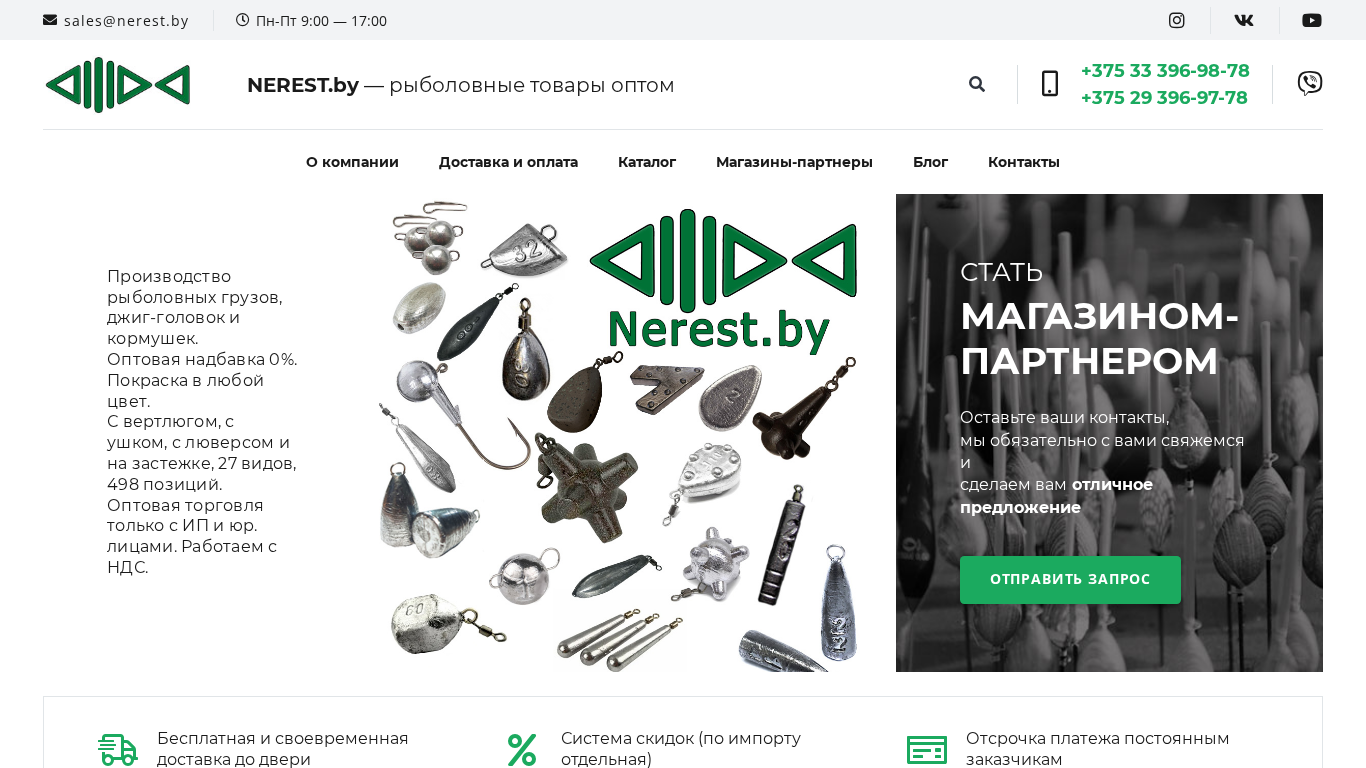 SEO-описание | ООО "Нерест" - рыболовные товары оптом. Широкий ассортимент, выгодные условия, поставки по всей Беларуси. Тел: +375 33 396-98-78 (Viber) |
