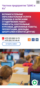 SEO-описаниеСпециалисты агентства «Курсовичок» помогут написать 📚 студенческие работы в Могилеве, области и Беларуси. ✓Оставьте заявку на сайте. ☎ +375 (29) 848-14-72.