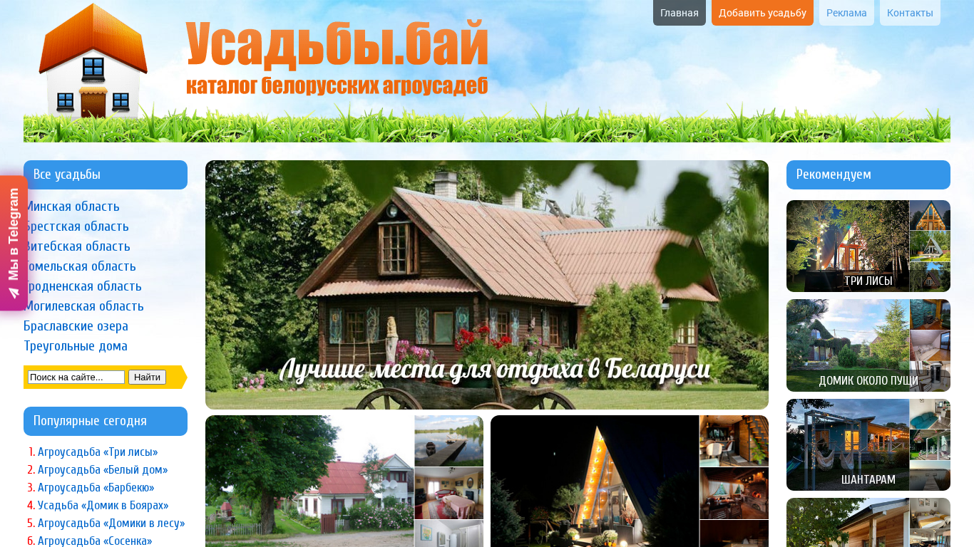 SEO-описание | Отдых в агроусадьбах Белоруссии, аренда усадьбы или снять домик на сутки. Сельский агротуризм в белорусских агроусадьбах, коттеджах и базах отдыха. Свадьба, рыбалка, охота и отдых в деревне. В каталоге есть описания, цены, фото, отзывы на усадьбы и деревенские гостиницы. Предлагаем арендовать домик или коттедж недорого. |