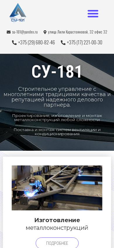 Название / Заголовок | СУ-181 — Проектирование, изготовление и монтаж металлоконструкций любой сложности |