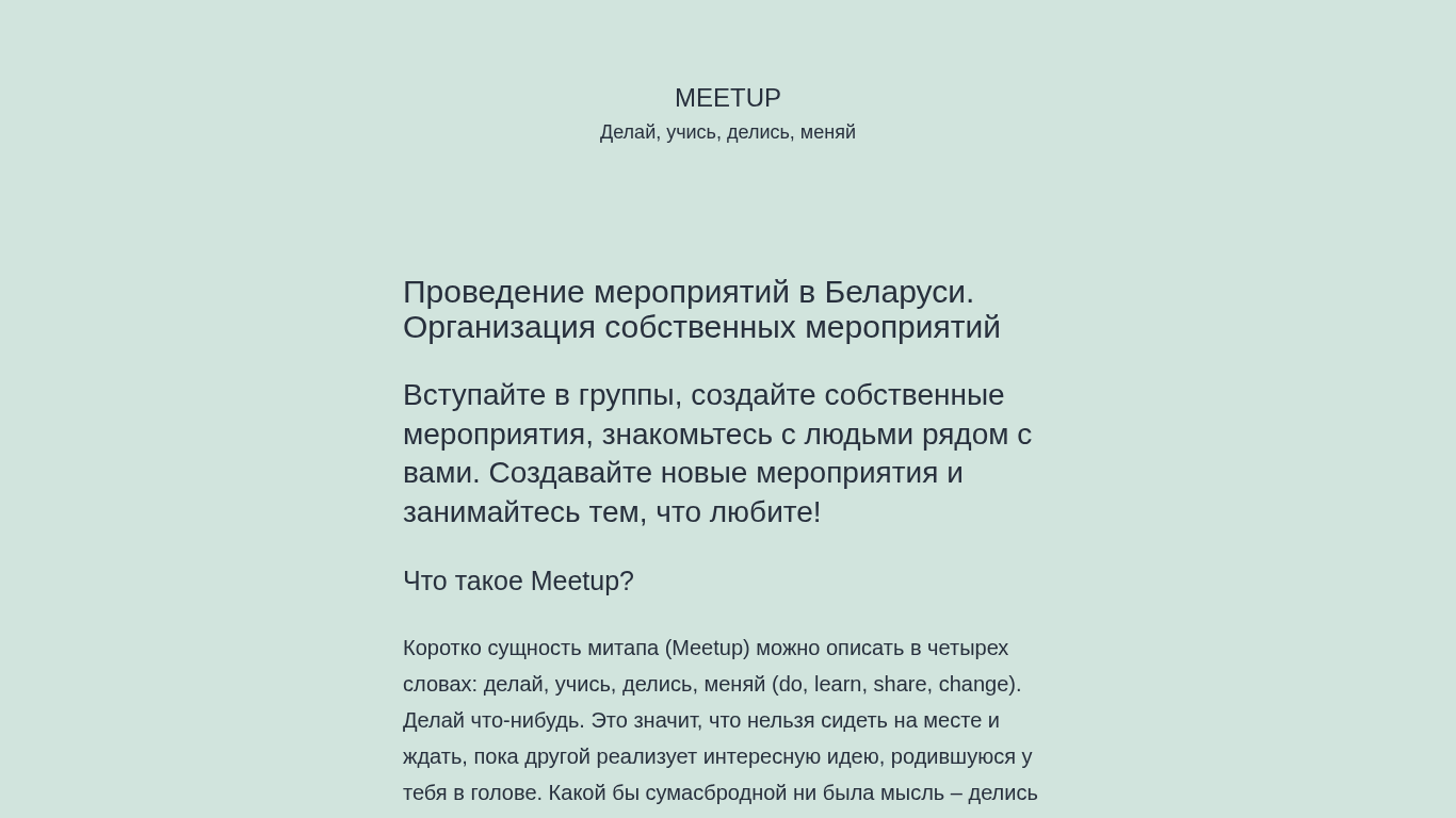 SEO-лексикамероприятий meetup учись делись делай меняй тебя проведение беларуси организация мероприятия людьми новые тем можно что-нибудь значит все хотя через