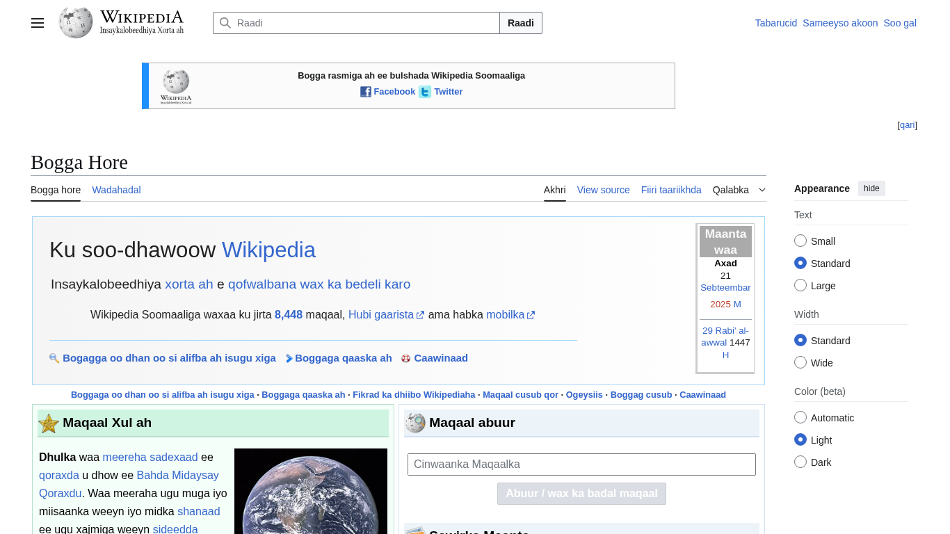 Canonical URL | https://so.wikipedia.org/wiki/Bogga_Hore |