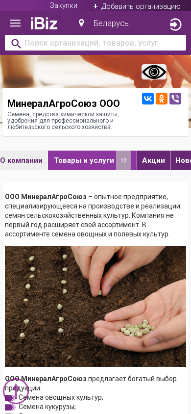 Название / Заголовок | МинералАгроСоюз ООО - Семена, средства химической защиты, удобрения для профессионального и любительского сельского хозяйства.. 220070, Минск, , Ваупшасова, 10 - 250 |