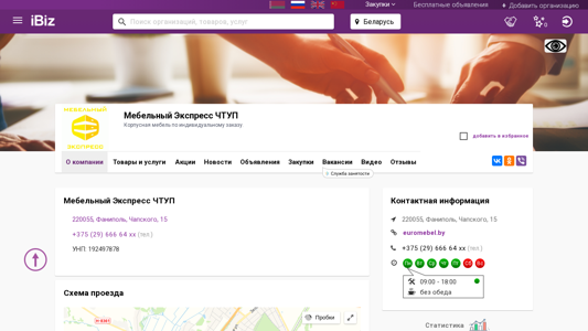 Название / Заголовок | Мебельный Экспресс ЧТУП - Корпусная мебель по индивидуальному заказу.. 220055, Фаниполь, , Чапского, 15 |