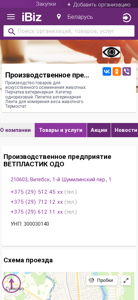 Название / Заголовок | Производственное предприятие ВЕТПЛАСТИК ОДО - Производство товаров для искусственного осеменения животных. Перчатка ветеринарная. Катетер одноразовый. Пипетка ветеринарная. Лента для измерения веса животного. Термостат.. 210603, Витебск, , 1-й Шумилинский пер., 1 |