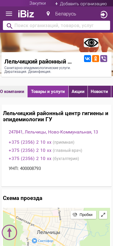 Название / Заголовок | Лельчицкий районный центр гигиены и эпидемиологии ГУ - Санитарно-эпидемиологические услуги. Дератизация. Дезинфекция.. 247841, Лельчицы, , Ново-Коммунальная, 13 |