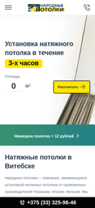 SEO-описание | Натяжные потолки - Народные потолки ⭐ Рассрочка 0% до 12 мес. ✔ Гарантия 25 лет ✅ Низкие цены за м2. ⏩ Бесплатный замер! Фото и отзывы ☎ +375(33)325-98-46 |