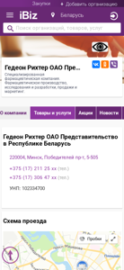 Название / Заголовок | Гедеон Рихтер ОАО Представительство в Республике Беларусь - Специализированная фармацевтическая компания. Фармацевтическое производство, исследования и разработки, продажи и маркетинг.. 220004, Минск, , Победителей пр-т, 5-505 |