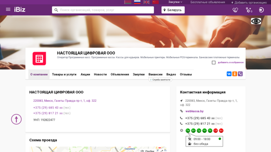 Название / Заголовок | НАСТОЯЩАЯ ЦИФРОВАЯ ООО - Оператор Программных касс. Программные кассы. Кассы для курьеров. Мобильные принтеры. Мобильные POS-терминалы. Банковские платежные терминалы.. 220083, Минск, , Газеты Правда пр-т, 1, оф. 322 |