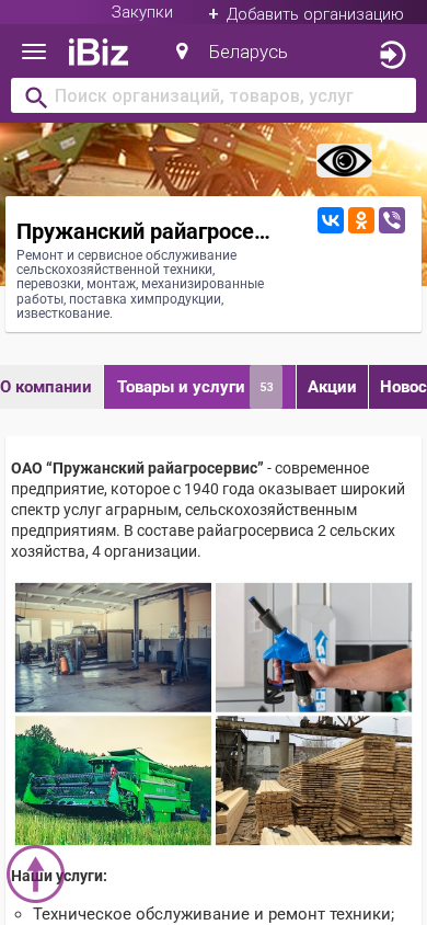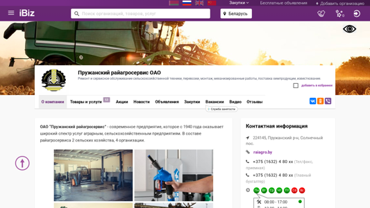 Название / Заголовок | Пружанский райагросервис ОАО - Ремонт и сервисное обслуживание сельскохозяйственной техники, перевозки, монтаж, механизированные работы, поставка химпродукции, известкование.. 224145, , Солнечный пос. |