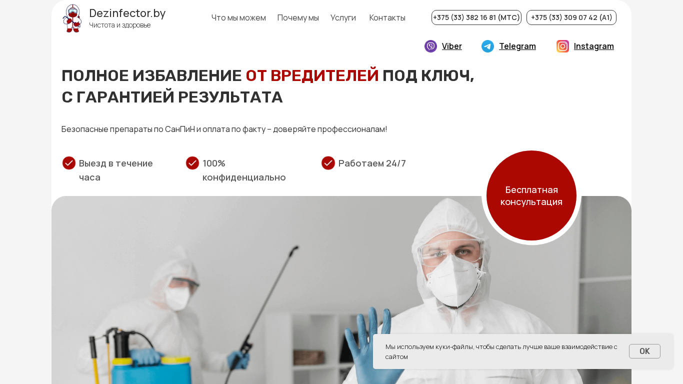 SEO-описание | Обработка помещений и участков от тараканов, клопов, клещей, ос, шершней и других вредителей, в короткие сроки в Минске и Минской области. Быстрое реагирование. Современные препараты |