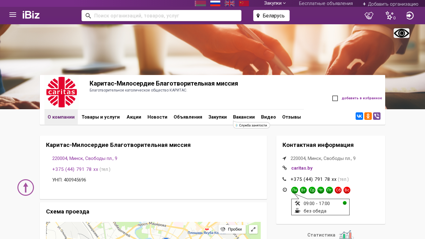 Название / Заголовок | Каритас-Милосердие Благотворительная миссия - Благотворительное католическое общество КАРИТАС.. 220004, Минск, , Свободы пл., 9 |