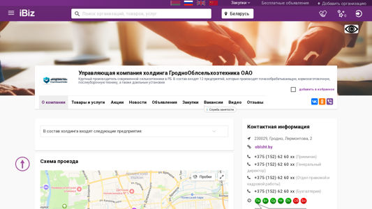 Название / Заголовок | Управляющая компания холдинга ГродноОблсельхозтехника ОАО - Крупный производитель современной сельхозтехники в РБ. В состав входят 12 предприятий, которые производят почвообрабатывающую, кормозаготовочную, послеуборочную технику, а также доильные установки.. 230029, Гродно, , Лермонтова, 2 |