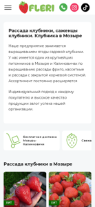 SEO-описание | Производство ягоды клубники садовой и саженцев. Купить свежую клубнику ФЛЕРИ в Мозыре и Калинковичах. Доставка по всей Беларуси. |