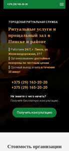 SEO-описание | Круглосуточные ритуальные услуги в Пинске. Городская ритуальная служба оказывает комплексную организацию похорон и кремацию. Магазин ритуальных товаров и принадлежностей. Прощальный зал. Перевозка тел умерших. |