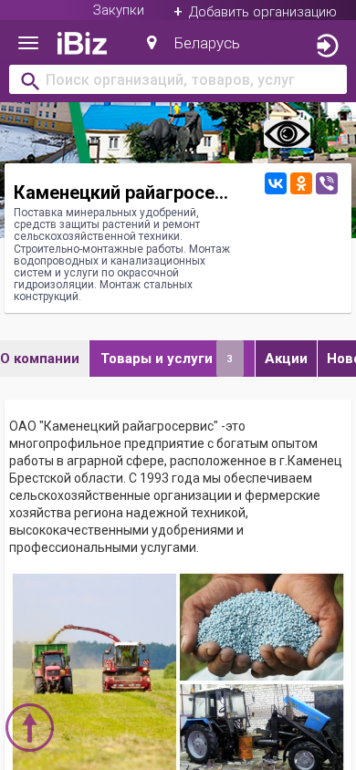 Адресг.Каменец Брестской области. С 1993 года мы обеспечиваем сельскохозяйственные организации и фермерские хозяйства региона на
