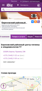 Название / ЗаголовокБерезовский районный центр гигиены и эпидемиологии ГУ - Березовский районный ЦГиЭ. Обеспечение санитарно-эпидемиологического благополучия населения района.. 225209, Береза, , Пушкина, 23А