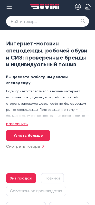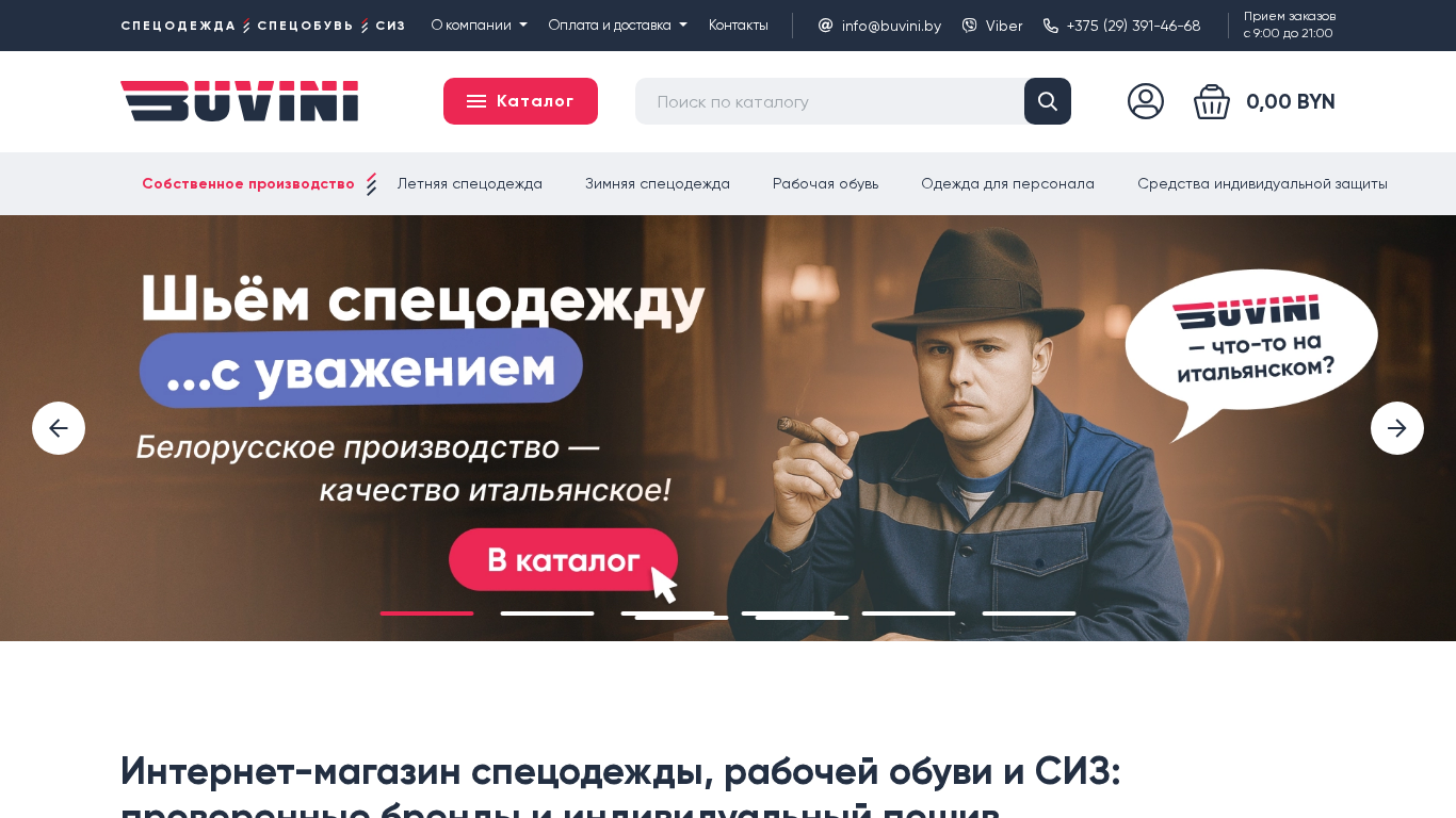 SEO-описаниеКаталог спецодежды, СИЗ и спецобуви в интернет-магазине «Бувини» ⭐ Доставка по всей Беларуси. Постоянные скидки. ✅ Гарантия качества. Дистрибьюция лучших брендов. Собственное производство. Оптом и в розницу. Цены без посредников. Профессиональная консультация.