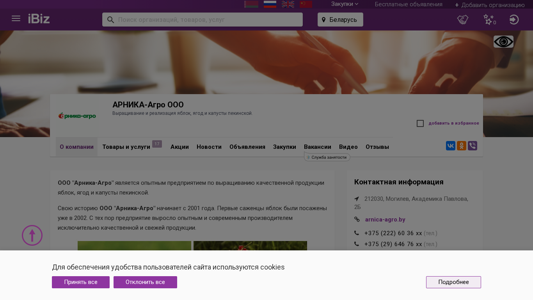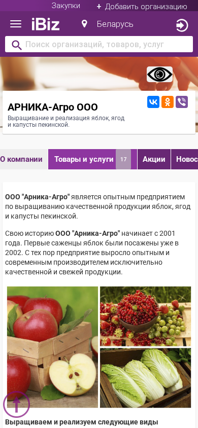 Название / Заголовок | АРНИКА-Агро ООО - Выращивание и реализация яблок, ягод и капусты пекинской.. 212030, Могилев, , Академика Павлова, 2Б |