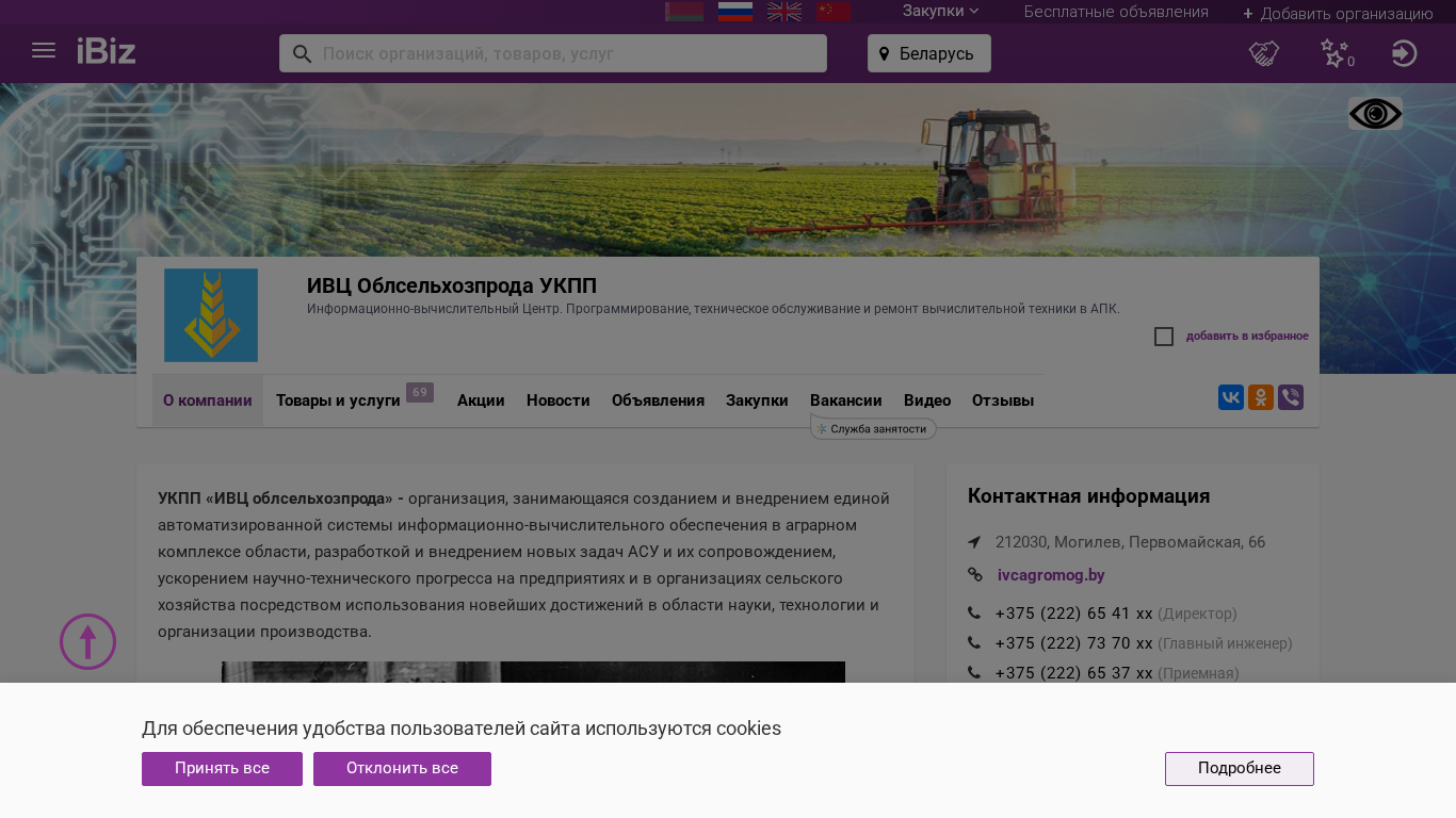 SEO-описание | ИВЦ Облсельхозпрода УКПП - Информационно-вычислительный Центр. Программирование, техническое обслуживание и ремонт вычислительной техники в АПК.. Схема проезда, контактные телефоны, адрес компании ИВЦ Облсельхозпрода УКПП. 212030, Могилев, , Первомайская, 66 |