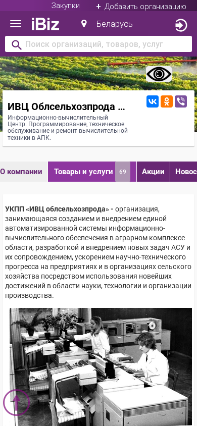 Название / Заголовок | ИВЦ Облсельхозпрода УКПП - Информационно-вычислительный Центр. Программирование, техническое обслуживание и ремонт вычислительной техники в АПК.. 212030, Могилев, , Первомайская, 66 |