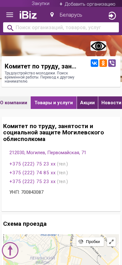 Название / Заголовок | Комитет по труду, занятости и социальной защите Могилевского облисполкома - Трудоустройство молодежи. Поиск временной работы. Перевод к другому нанимателю.. 212030, Могилев, , Первомайская, 71 |