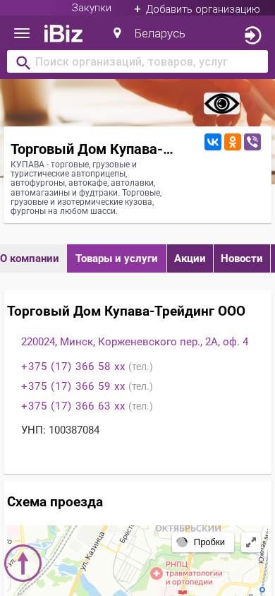 Название / Заголовок | Торговый Дом Купава-Трейдинг ООО - КУПАВА - торговые, грузовые и туристические автоприцепы, автофургоны, автокафе, автолавки, автомагазины и фудтраки. Торговые, грузовые и изотермические кузова, фургоны на любом шасси.. 220024, Минск, , Корженевского пер., 2А, оф. 4 |