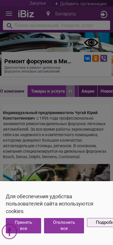 SEO-описание | Ремонт форсунок в Минске ИП Чугай Ю.К. - Диагностика и ремонт дизельных форсунок легковых автомобилей.. Схема проезда, контактные телефоны, адрес компании Ремонт форсунок в Минске ИП Чугай Ю.К.. 220034, Минск, , Бядули, 15 |
