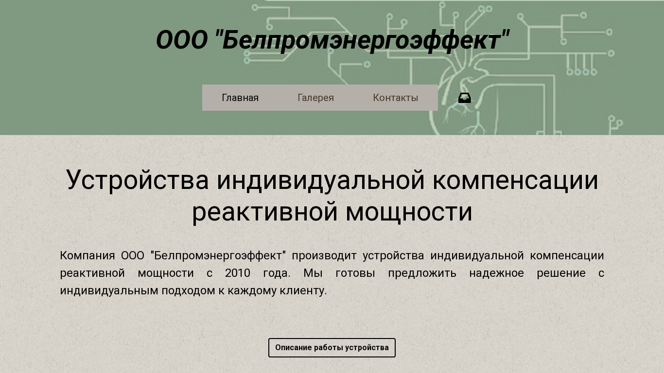 SEO-описание | Комания ООО "Белпромэнергоэффект" компенсация реактивной мощности. Индивидуальный подход к клиентам. |