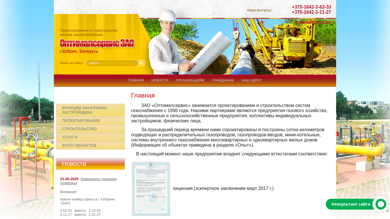 Адрес | г.Кобрине и всю необходимую строительную технику. Таким образом ЗАО «Оптималсервис» способна выполнить работы по проектиров |