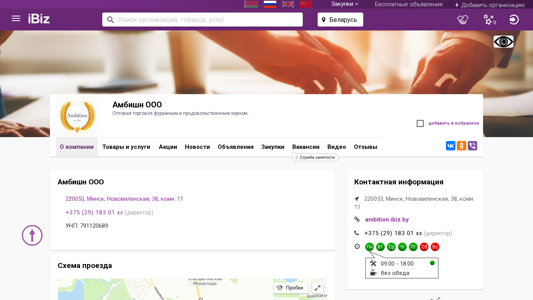 favicon Амбишн ООО - Оптовая торговля фуражным и продовольственным зерном. . 220053, Минск, , Нововиленская, 38, комн. 11