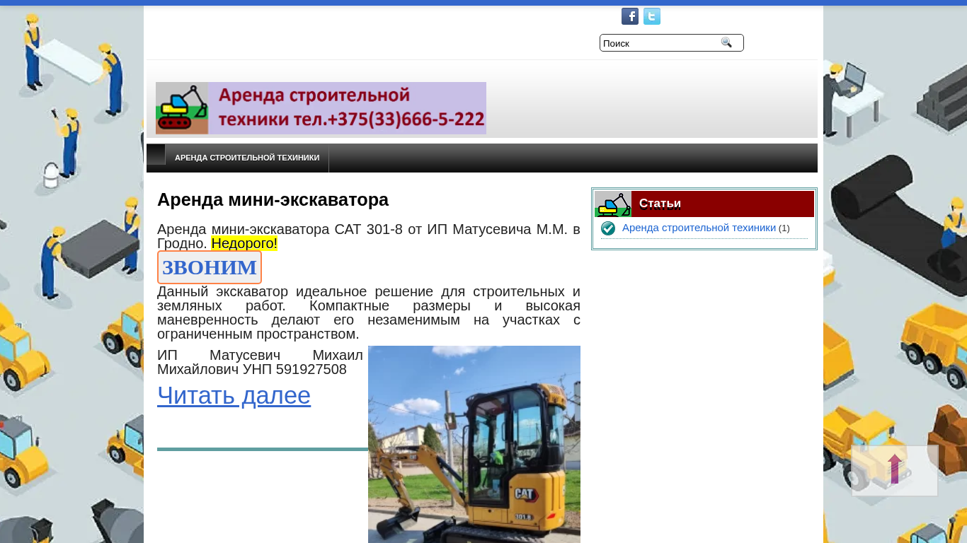 | SEO-описание | Аренда мини зкскаватора в г.Гродно, услуги мини экскаватора, круглосуточно. Tел.+375(33)666-5-222(МТС) |