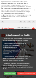 | AI-анализ | --- The web project "Alpha Teplo" is a heating equipment store located in Minsk, Belarus. The website offers a wide range of over 1000 heating systems in stock, including boilers, radiators, and heating pumps. Prices for the equipment are indicated, and the store offers free consultation. Delivery is available across Belarus. The site uses cookies for site improvement and content personalization. Users are informed about this and can manage their cookie settings. The company "Santonbel" is responsible for transferring certain data to countries with adequate personal data protection, such as Ireland, the Netherlands, and the Russian Federation, to companies including Yandex Metrics, Yandex Mobile Ads, ADFOX, and Google Analytics. |
