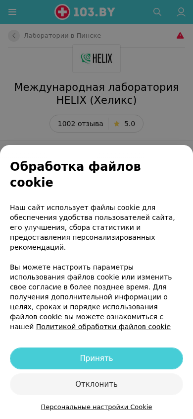 SEO-описание | Международная лаборатория HELIX (Хеликс) Пинск пр-т Жолтовского 22 – телефоны, время работы, отзывы и схема проезда в каталоге медицинского портала 103.by. |