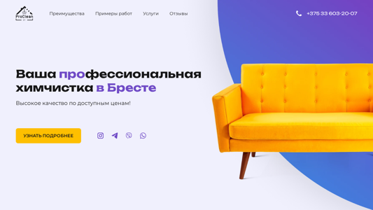 SEO-описание | Химчистка мебели и автомобиля в Бресте и области 🛋️🚗 по доступным ценам с профессиональным качеством и сушкой. Клининг с выездом в день заказа 📞 +375 33 603-20-07 |