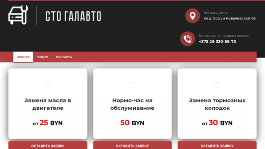 Название / Заголовок | СТО "Галавто" Минск — Кузовные и покрасочные работы, восстановление геометрии, ремонт тормозных систем, диагностика и ремонт подвески, мелкий ремонт ДВС, техобслуживание организаций. |