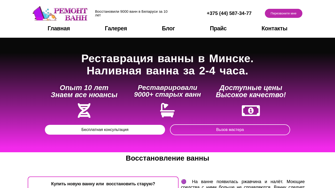 Название / Заголовок | Реставрация ванн в Минске | Наливная ванна | Цены |