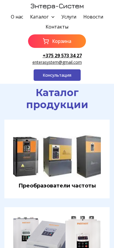 SEO-описание | Компания Энтера-Систем предлагает купить преобразователи частоты, устройства плавного пуска и другое электротехническое оборудование от ведущих европейских производителей ✓ |