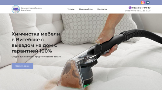 SEO-описаниеКомпания CLEAN MASTER предлагает вам услуги химчистки мебели в Витебске. Вот уже более 5 лет мы радуем вас чистой мебелью и приятными ценами.