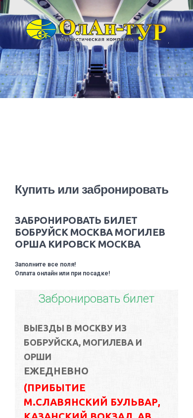 SEO-описание | Купить билет на автобус Москва - Бобруйск. Купить билет на автобус Москва - Могилев. Ежедневный рейс, низкие цены, удобное расписание, чистые автобусы. |