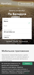 | AI-анализ | The website is an online bus ticketing platform for the company MroyaTour, offering bus routes from Sloним to Минск and back. Users can make bookings through the site, with the option to check schedules for specific dates and view available seats. The company provides passenger transportation services, with a personal cabinet for managing bookings and a customer support hotline. The site also features a mobile application for easy and convenient booking on the go. Users can find information about ticket prices, departure and arrival times, and contact details for the company. The site is available for booking at any time and from any location. The application also synchronizes with the user's personal cabinet and ticket order history on the site. The design is modern and user-friendly. The company values user privacy and handles cookie files through the user's browser, with detailed cookie management options available. The domain for the website is prosta.by. |