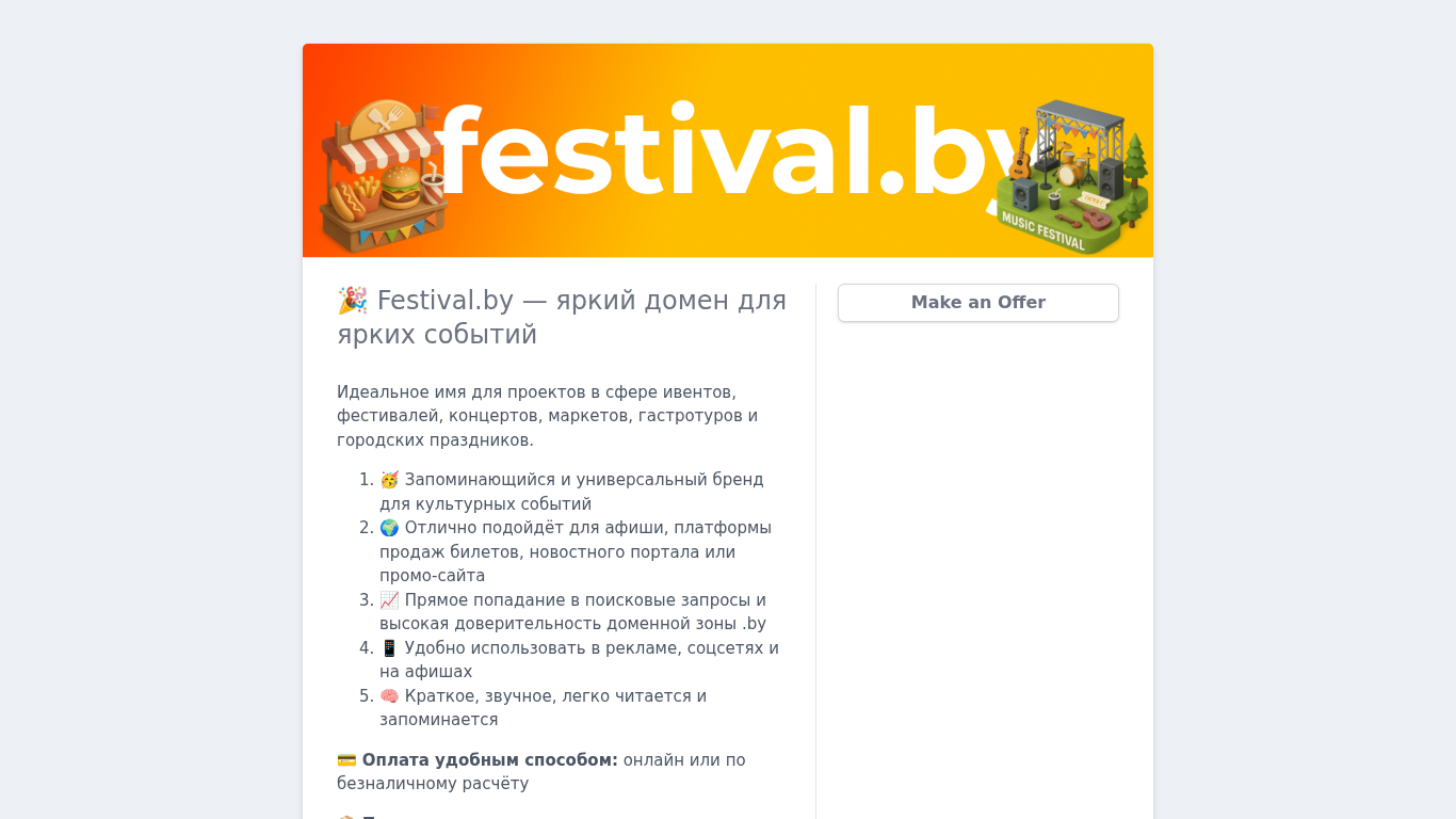 Название / Заголовок | Aftermarket.com | 🎉 Festival.by — яркий домен для ярких событий |