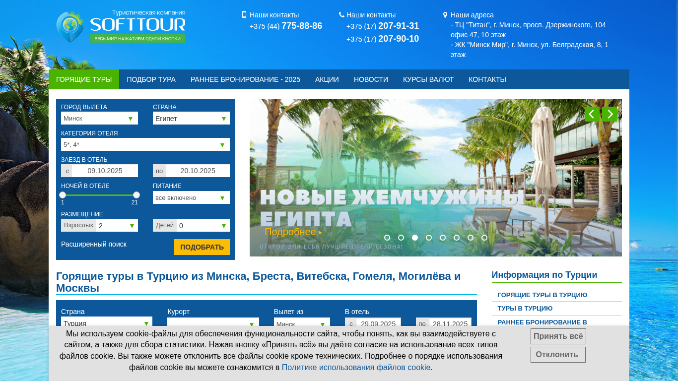 Ключевые словатур в Турцию горящие туры в Турцию из Москвы отдых в Турции путевки в Турцию курорты Турции отели Турции дешевые туры цены из Минска